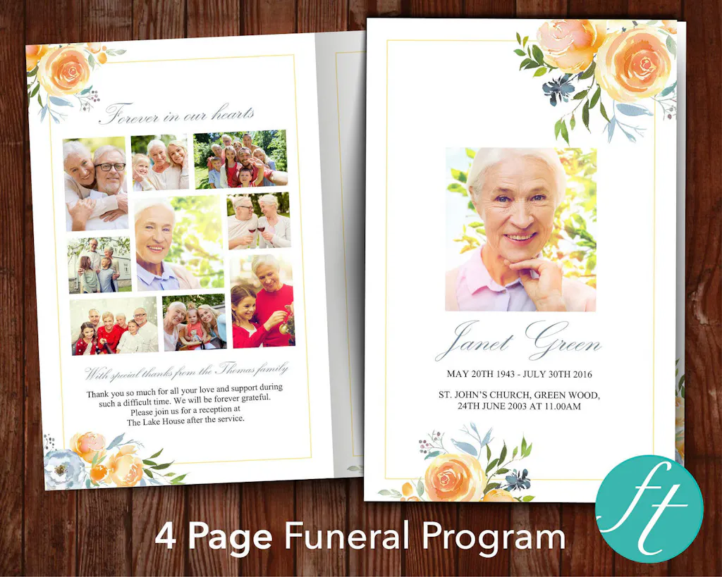 This template is for your PERSONAL USE ONLY, which means you can use it to make a personal funeral program for a friend or relative, but it is not for commercial use. The template cannot be resold or used in any part to make digital or physical items for sale and cannot be distributed for free as editable templates or made freely available online.