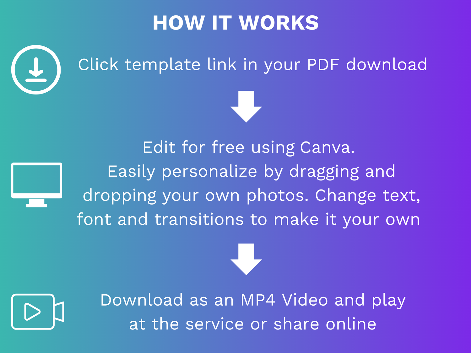 Slideshow can be played during or after the funeral service or shared digitally with friends and family for a precious keepsake.